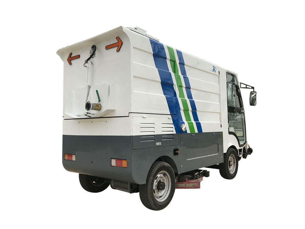 Ruibao q12l pure electric high-pressure washing car is mainly used for washing and maintenance of motorway, non motorway, sidewalk, municipal garden, square and other roads, and for recycling sewage. Under the left and right side flush, high-pressure cleaning plate, suction rake device, front high-pressure flushing and multi angle flushing device, used for deep cleaning of pavement, road teeth, traffic sign line and plastic runway.